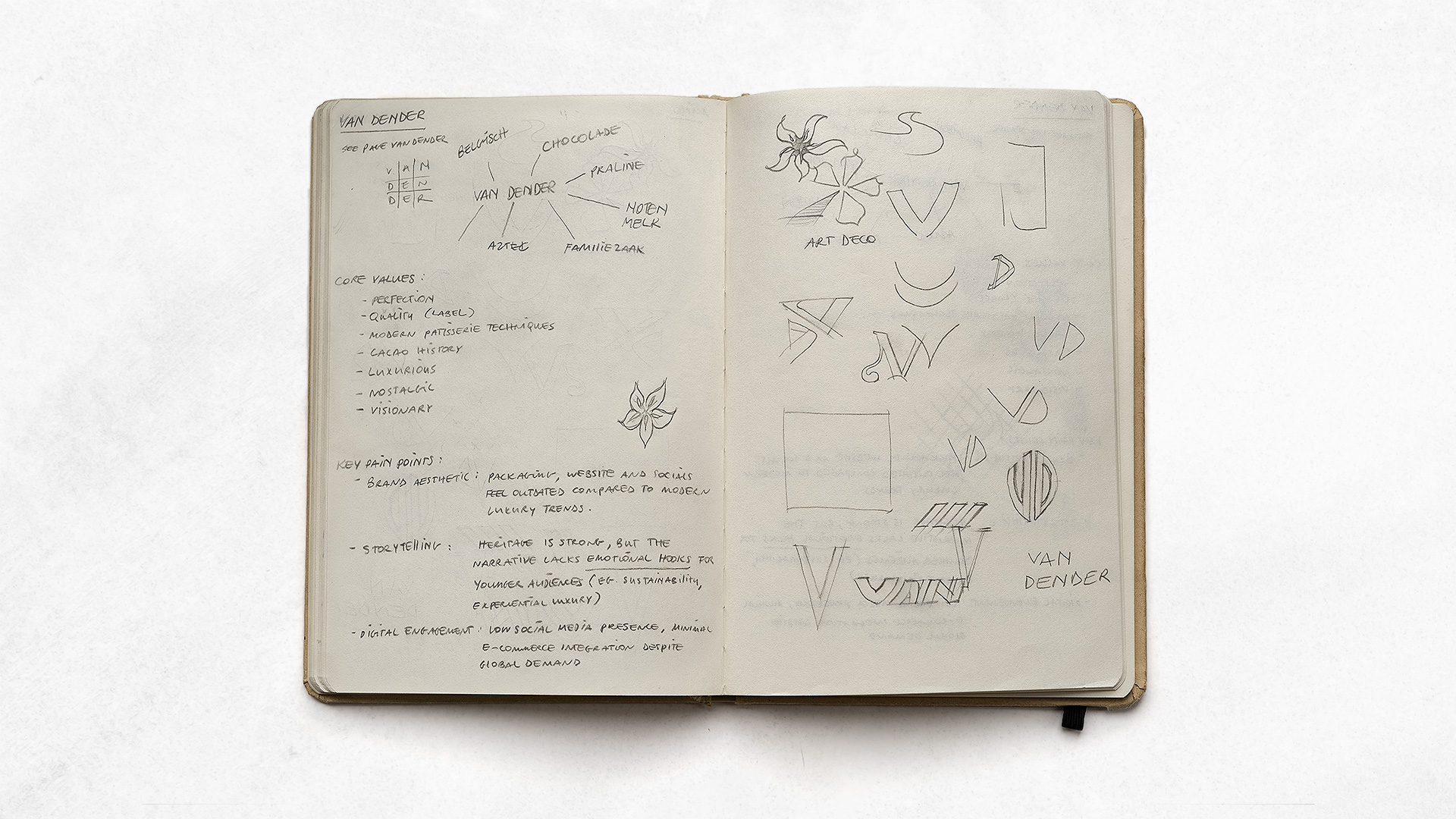Van Dender is een historisch chocoladehuis, heruitgevonden voor een nieuwe generatie. Het verouderde logo maakte plaats voor een custom woordmerk, het kleurenpalet werd verfijnd naar diepe cacao- en gedempte bordeauxtonen, en het logo kreeg een hertekening voor digitaal en drukwerk. De identiteit verbindt traditie met moderne helderheid: minimalistisch, elegant en geschikt voor zowel verpakkingen als digitale toepassingen.